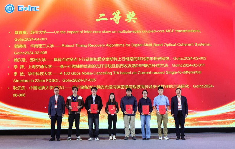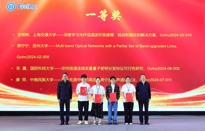 近日,在武汉举行的“第七届光信息与光网络大会(GoInc2024)”上,我院研究生表现优异,在优秀口头报告评选中荣获多个奖项。经过与其他高校学生的激烈竞争,我院郭宁宁同学荣获一等奖,蔡嘉祺和赖兴浩两名同学荣获二等奖,另外五名研究生荣获三等奖。